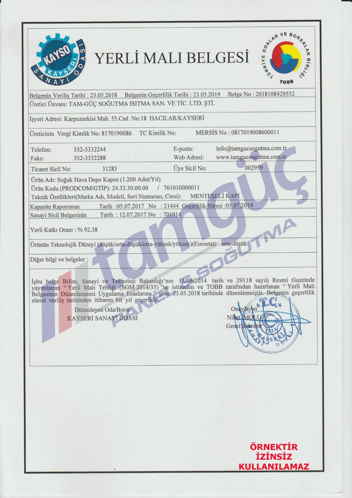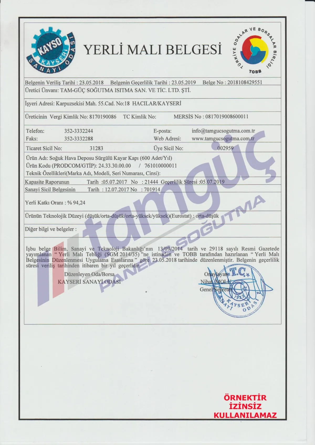 Sertifikalar