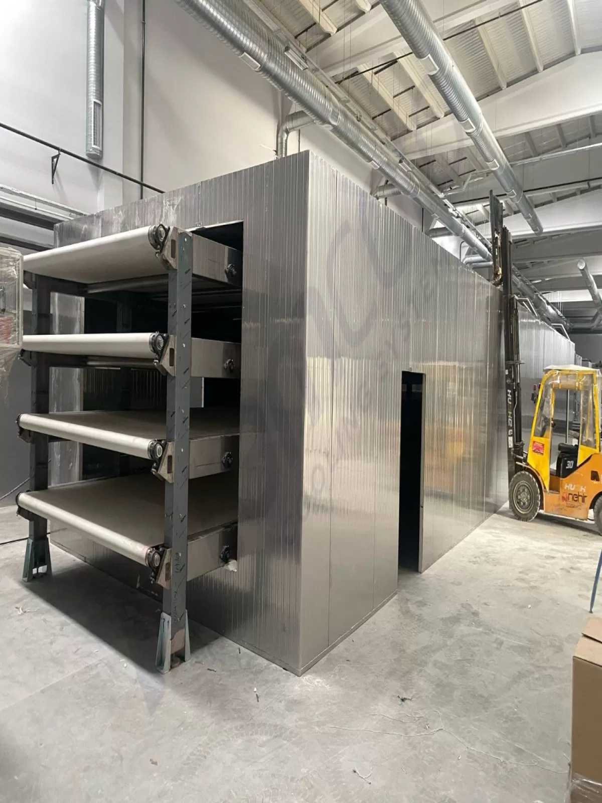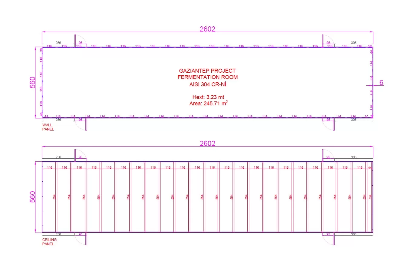 One of our projects involved dough processing in Turkey / Gaziantep , where we implemented Cr-Ni (AISI 304 stainless steel) sandwich panels and Cr-Ni (AISI 304 stainless steel) hinged doors